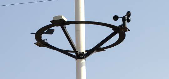 1、傳感器固定:圓盤正前方固定光照傳感器,左右兩側(cè)固定風(fēng)速、風(fēng)向傳感器